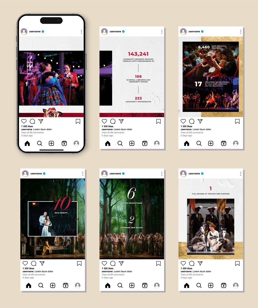 In its second year of publication, the Impact Report for Houston Grand Opera serves as an annual document highlighting the successes of the previous season. Working in tandem with the Chief Marketing Officer and the Director of Communications, we developed eye-catching layouts focusing on numbers and photography—keeping the overall copy to a minimum.